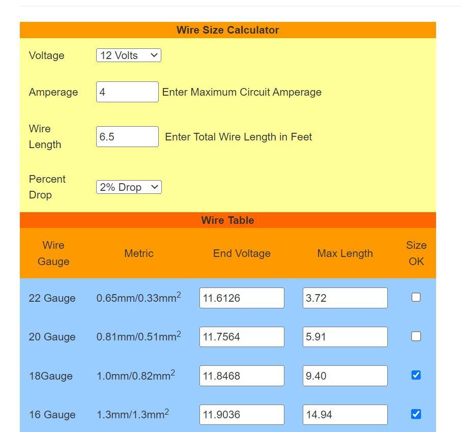 Heres a table that provides general guidance on 12V DC wire sizes based on current in amperes and approximate maximum distances. It allows you to input detailed. Enter 03 m for the one-way distance D.